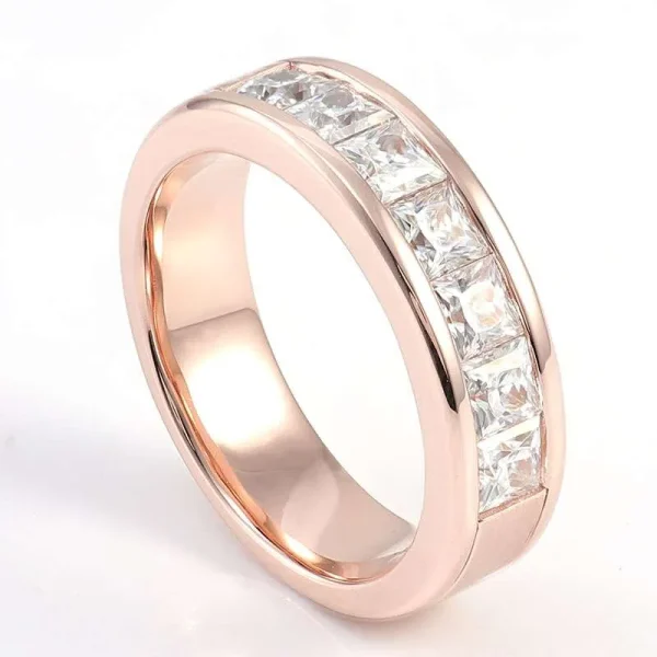 **Charming Rose Gold 3.15CTW Princess Cut Moissanite Ring