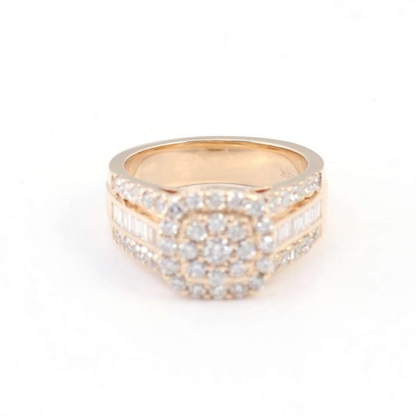 **Dazzling Yellow Gold Round Cut Moissanite Cluster Ring