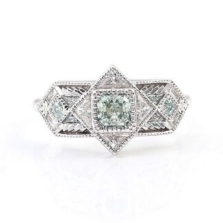 Exquisite Vintage Inspired White Gold Moissanite Ring