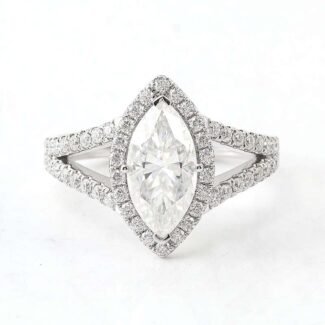 Dazzling White Gold 2.2CT Marquise Cut Moissanite Halo Ring