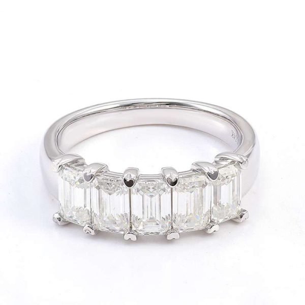**Tow Band:Glamorous Yellow Gold Emerald Cut Moissanite Ring