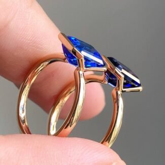 *2.5ct Emerald Cut Sapphire V Bezel Set Ring In Cobalt Blue And Royal Blue
