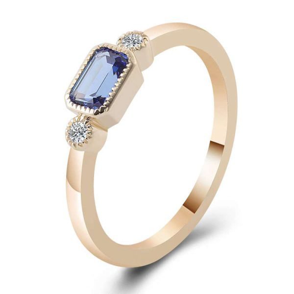 *Breathtaking Yellow Gold 0.96CT Emerald Cut Blue Lab Gemstone Three Ring