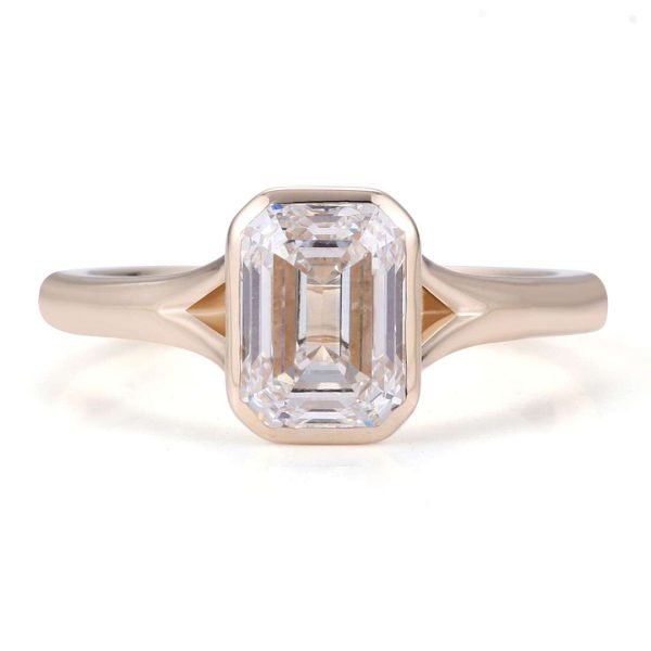 **Magnificent Yellow Gold Moissanite Emerald Cut Ring