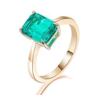 Yellow Gold 3CT Colombia Emerald Cut Lab Gemstone Solitary Ring