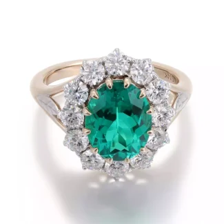 3.5ct Oval-Cut Colombian Emerald Ring with Moissanite Halo in 14K Gold