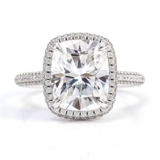 Captivating White Gold 5CT Cushion Cut Moissanite Pave Ring