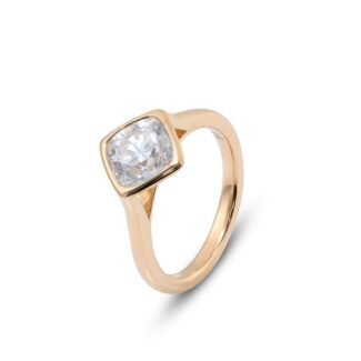 7MM Cushion moissanite bezel set solitaire ring