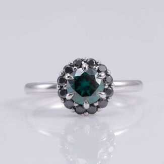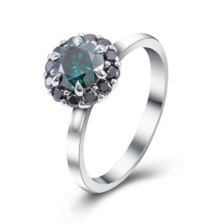 Captivating Round Cut Green Moissanite White Gold Halo Ring