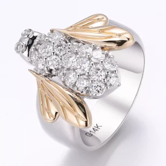 Apian Majesty Ring | Sculpted Bee Motif Ring with Round-Cut Moissanite Body