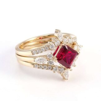 Breathtaking Yellow Gold 3CT Asscher Cut Lab Ruby Art Deco Ring