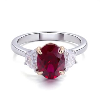 Exquisite Pigeon Blood Ruby Lab Gemstone White Gold Three Stone Ring