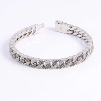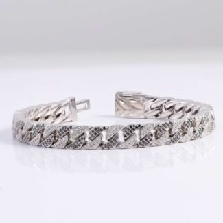 7.5Inches White & Black Moissanite Triangles Intertwined Cuban Bracelet