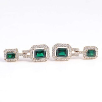 Magnificent Emerald Cut Zambia Colored Lab Gemstone Yellow Gold Drop Earrings