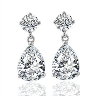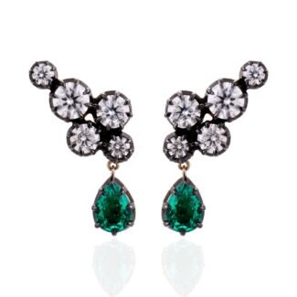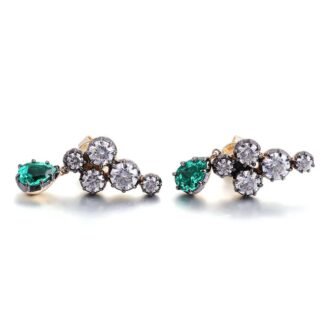 Yellow Gold Round Cut Lab Green Gemstone cluster Drop Earrings