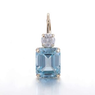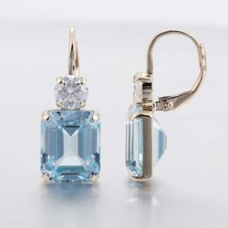Yellow Gold Emerald Cut Blue Lab Gemstone Drop Earrings