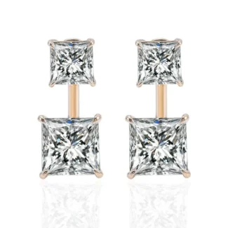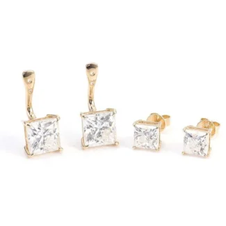 Alluring Yellow Gold Double Princess Cut Moissanite Stud Earrings