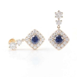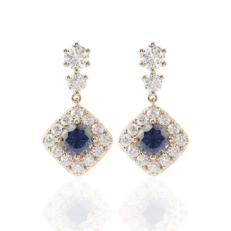BLUE GREEN Cushion Cut Moissanite Yellow Gold Stud Earrings