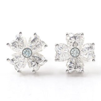 Blue-Green Round and Heart Moissanite Stud Earrings