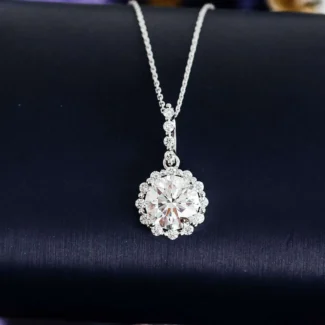 Luxury Snow Pendant Necklace with a 2ct Round Moissanite