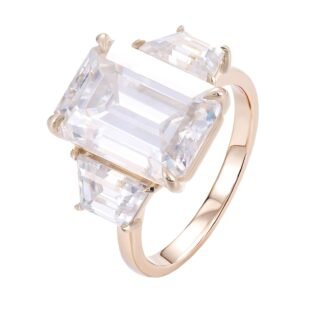 Emerald Cut Moissanite Ring with Precision Faceted Planes