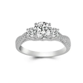3 stone round moissanite twist arm pave band engagement ring