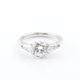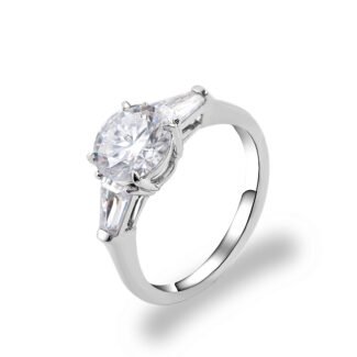 1.2ct Round Moissanite with Tapered Baguette Side Stone Engagement Ring