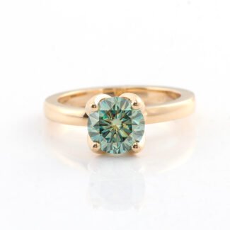 1.5ct Blue-green Round Brilliant Cut Moissanite Ring