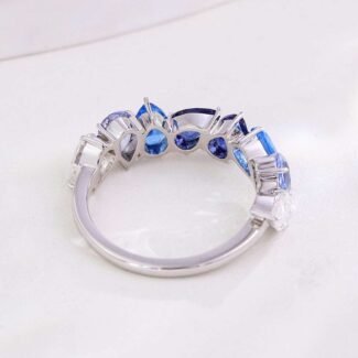 Gradient Blue Gemstone Ring with Pear cut Lab gemstones