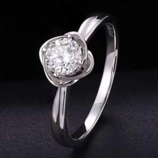 Leaf Inspired Hidden Halo Moissanite Engagement Ring