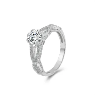Ornate Twisted Band Diamond Engagement Ring