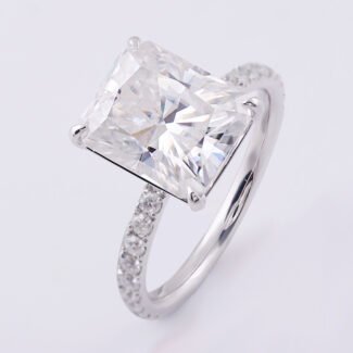 Radiant-Cut Moissanite Ring | Hidden Halo Moissanite Ring with Precision Radiant Cut