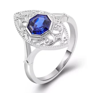 Royal Hexagon Ring | 1.8ctw Royal Blue Lab Sapphire with miro-moissanites