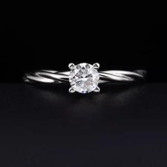 A beautiful twist on a timeless classic, this round lab diamond solitaire ring in 18k white gold is perfect for a modern romance. A brilliant, round-cut lab diamond is held securely in a classic four-prong setting, allowing its fire to take center stage. The true artistry is in the band, which features a delicate, twisted rope design symbolizing two lives intertwining. This ethical and elegant piece is a sophisticated, deeply meaningful symbol of your unique love story.