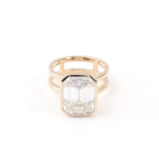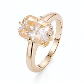 Sensational Yellow Gold Emerald Cut Moissanite Ring