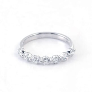 Admire this stunning white gold round – cut moissanite band. Meticulously crafted from premium white gold, it presents a sleek and elegant appearance. The band is adorned with a row of magnificent round cut moissanite stones, each boasting a remarkable VVS clarity. Moissanite, known for its outstanding brilliance and durability, sparkles vividly, creating a continuous and dazzling display of light. Its minimalist yet sophisticated design makes it suitable for various occasions, whether worn alone as a statement piece or stacked with other rings for a more layered look. This moissanite band is a timeless and versatile addition to your jewelry collection, symbolizing both beauty and refinement.
