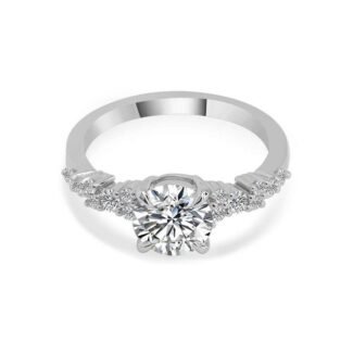 Symbolize your eternal love with this exquisite white gold engagement ring! Featuring a round cut VVS moissanite center stone, surrounded by sparkling moissanite accents, it radiates elegance and romance. The VVS moissanite’s exceptional clarity ensures a brilliant shine, making it a perfect choice for marking your precious commitment. Ideal for proposals and engagements, this ring will be a timeless treasure in your love story.