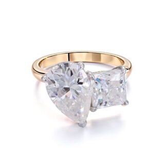 Yellow Gold 6CTW Princess And Pear Cut Moissanite Toi Et Moi Ring