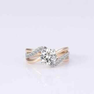 Yellow Gold and White Gold Twisted Band Diamond Ring