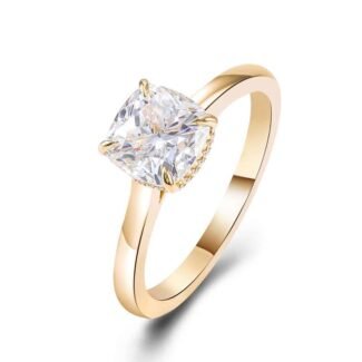 Yellow Gold 3CT Cushion Cut Moissanite Solitaire Ring