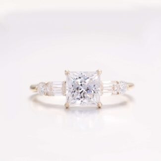 Yellow Gold Moissanite 2.2CT Princess Cut Ring