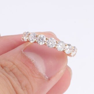 Yellow Gold Round Cut 12 Stone Half Eternity Moissanite Anniversary Ring
