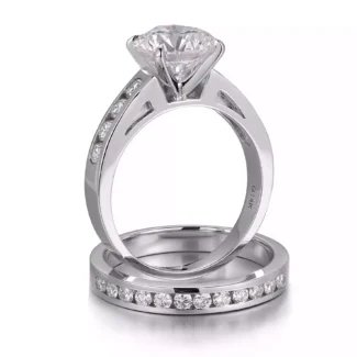 Moissanite Engagement & Wedding Ring Set – Classic Solitaire with Channel-Set Band for Couples