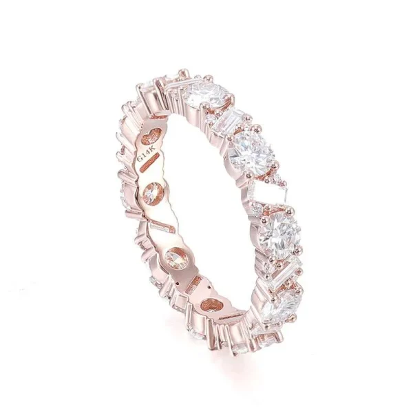 *3.1CTW Round and Baguette Cut Moissanite Rose Gold Eternity Ring