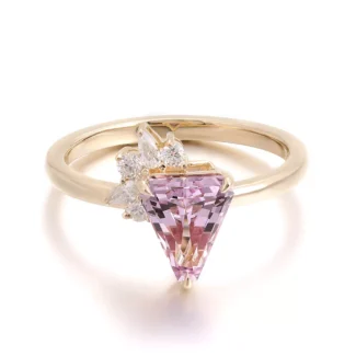 Sakura Pink Lab Gemstone Ring | Dew-Kissed Triangle with Moissanite & Gold Band