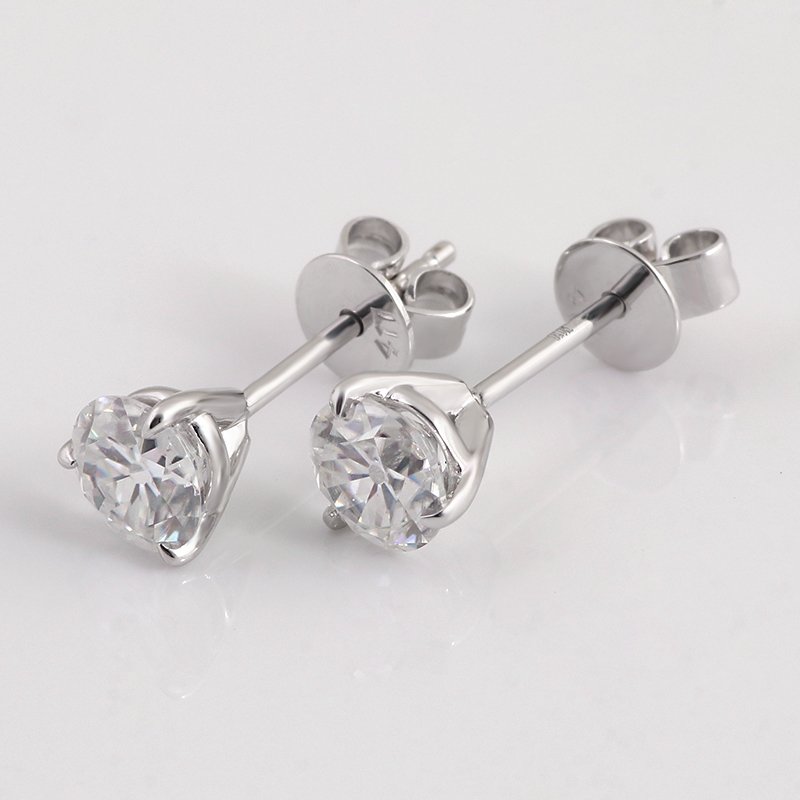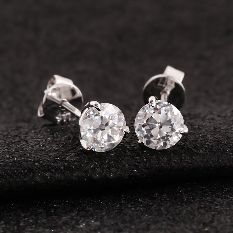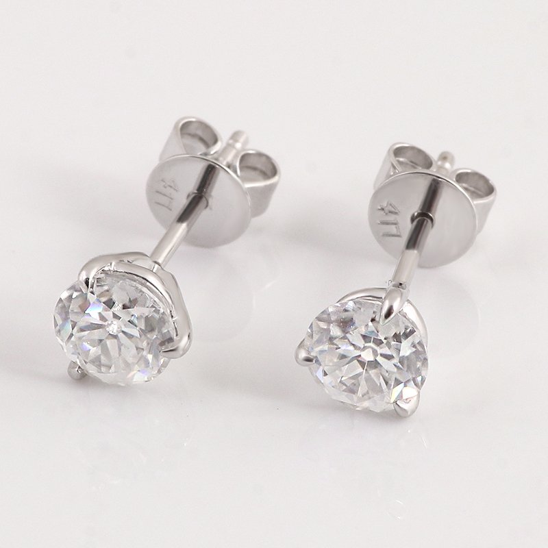 These stunning, eye-catching stud earrings feature glistening round OEC cut moissanite secured by 3-prong.Simple design makes these stud earrings more versatile.