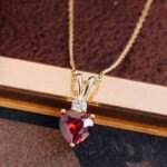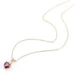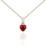 Introducing our heart-shaped ruby gem pendant necklace, a pendant necklace that truly makes a statement. This beautiful pendant necklace features a stunning heart shaped moissanite, whose rich, vibrant colors symbolize love and passion. This pendant necklace is elegantly accented with a brilliant round moissanite for an added touch of sparkle. Perfect for a special occasion or as a heartfelt gift, this pendant necklace is designed to make you shine.