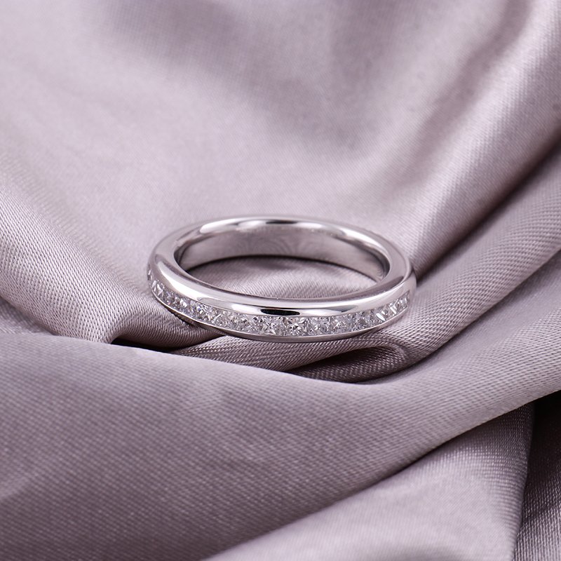 The classic ring band sparkles from multiple angles of dazzling princess cut moissnaite & create charming reflection.The ring uses square moissanite instead of the traditional round, this design makes the ring unique.