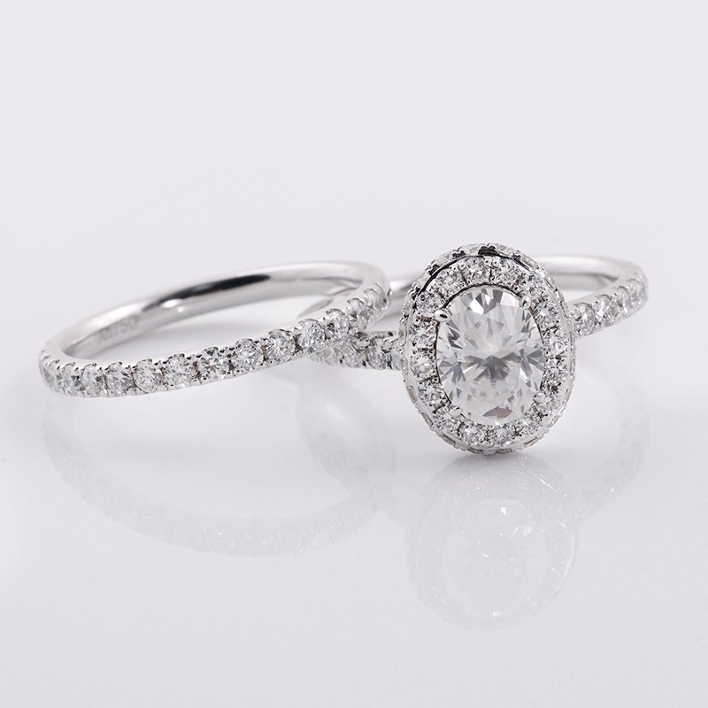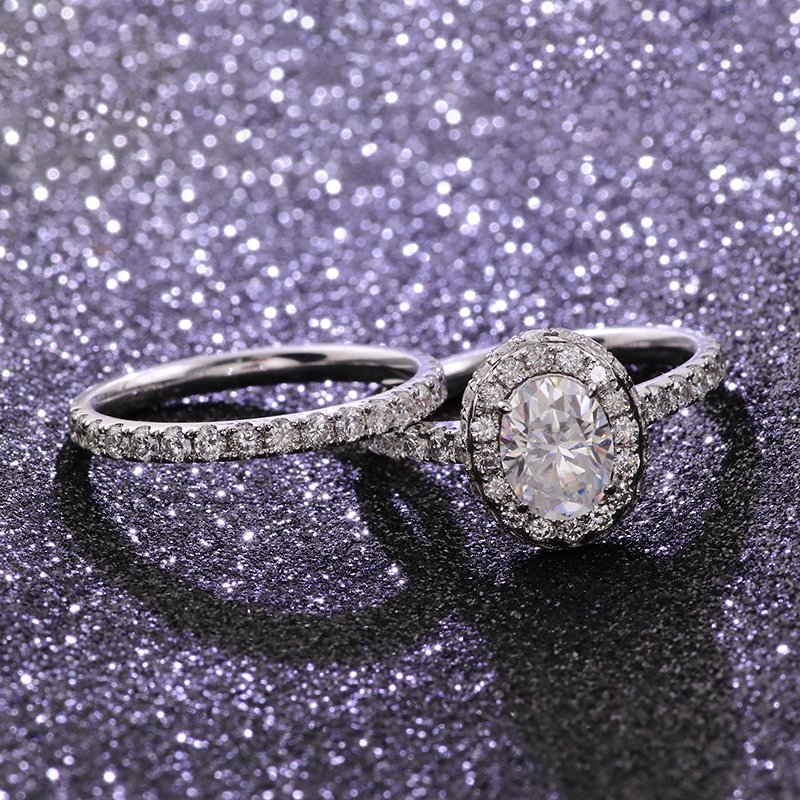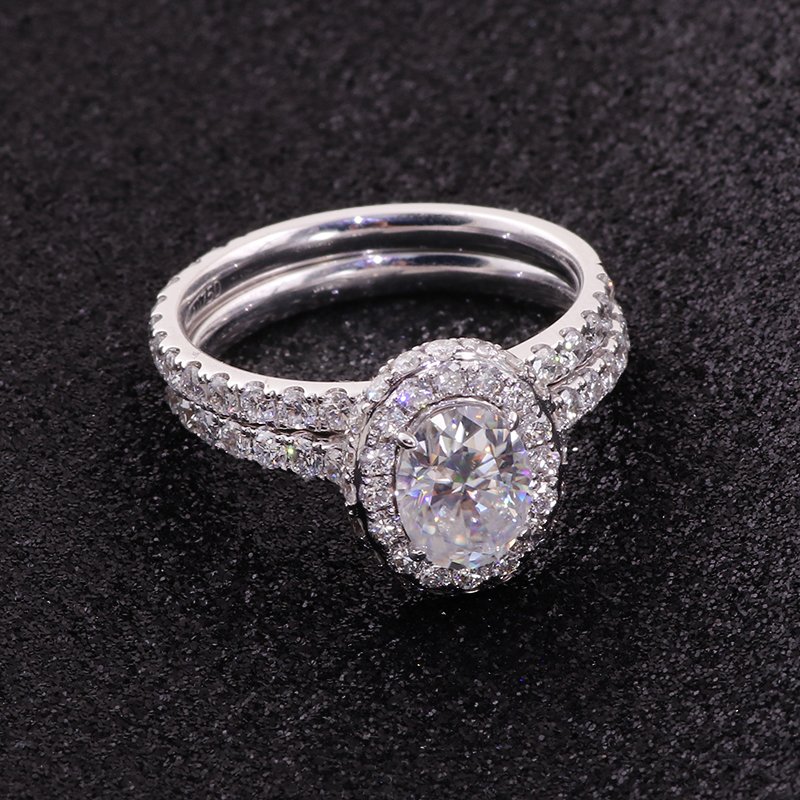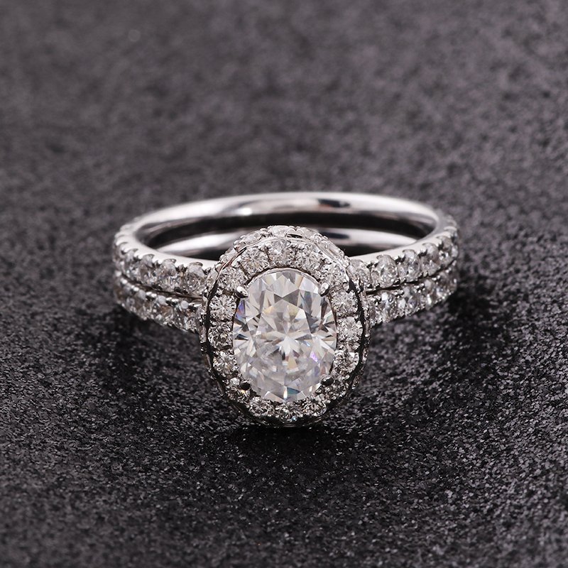 1.5ct Classic Oval Halo Moissanite Wedding Set