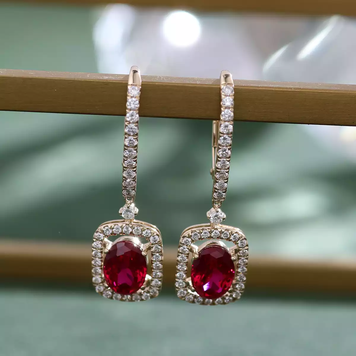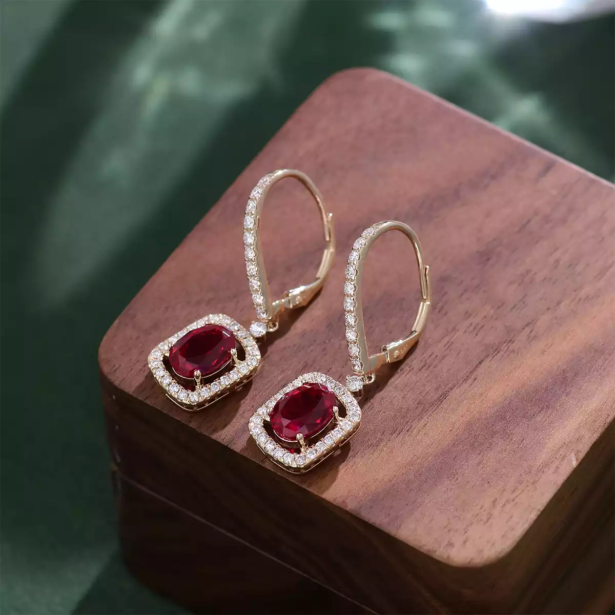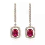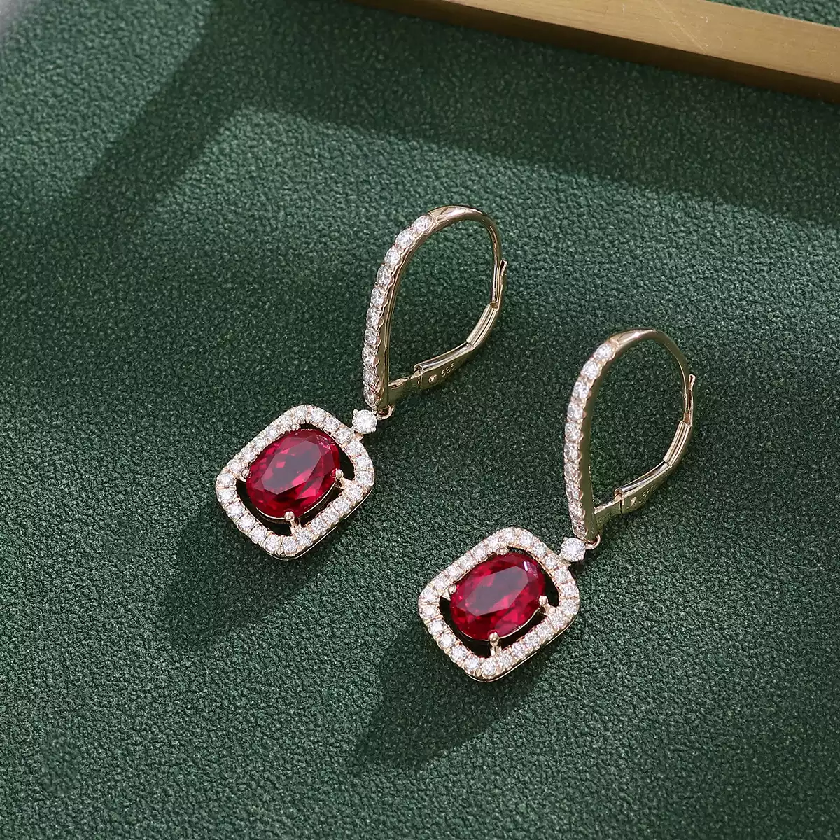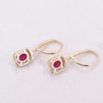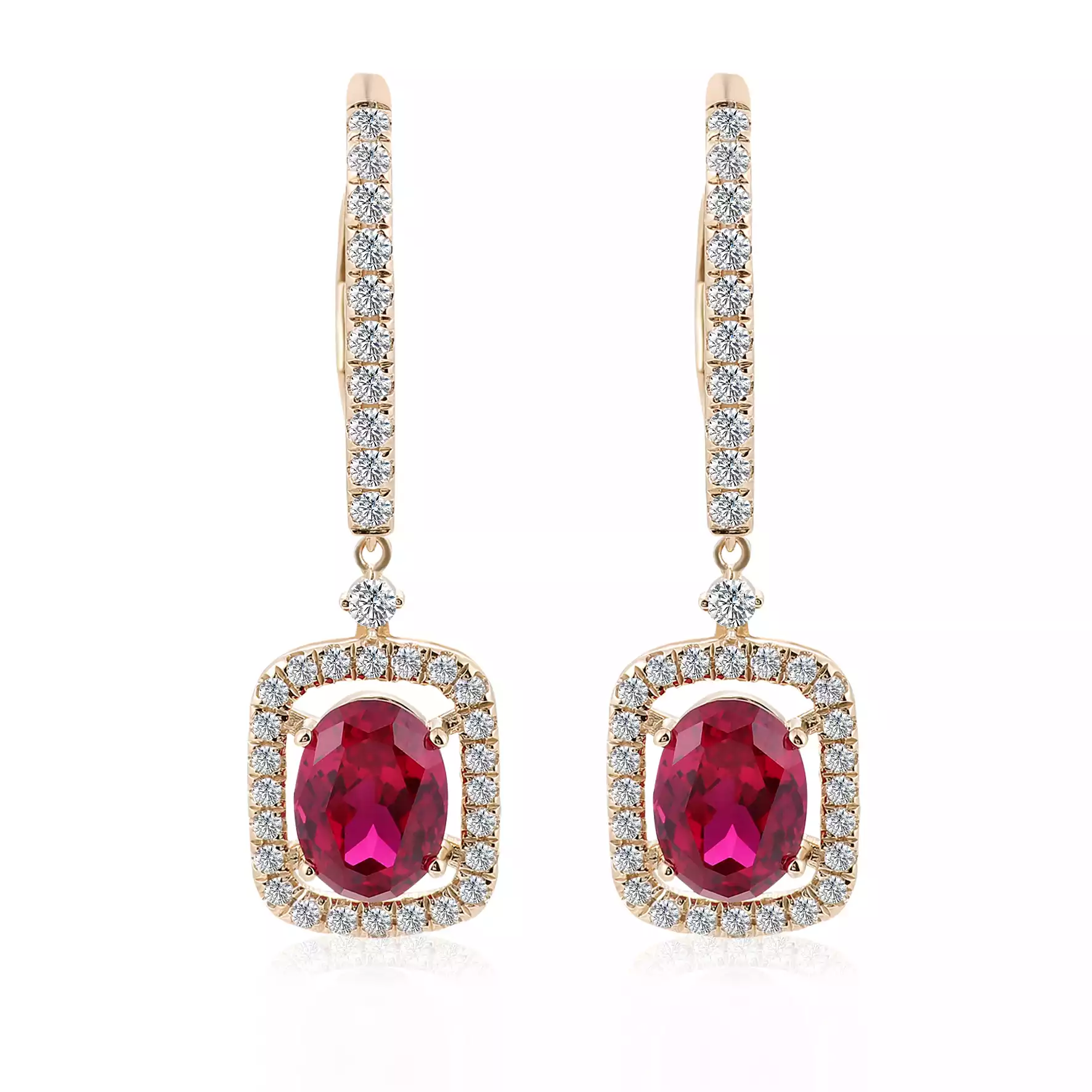 10K Yellow Gold 2ct Oval Cut Ruby & Moissanite Drop Earrings